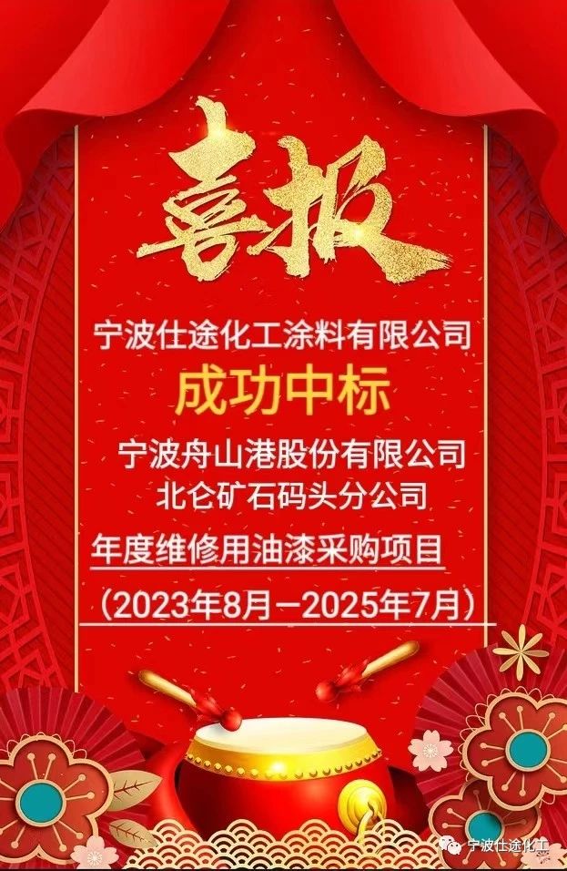 成功中標(biāo)!寧波仕途化工中標(biāo)舟山港北侖礦石碼頭“2023-2025年度維修油漆采購”項目公開招標(biāo)!